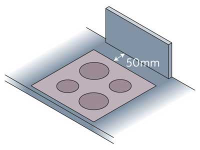 - A minimum of 120mm is required between two hob cutouts