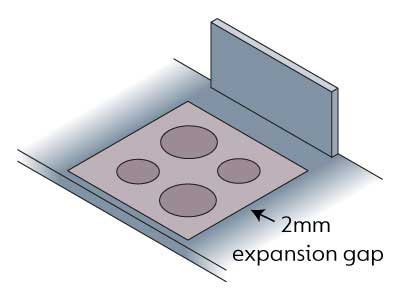 Solid surface worktops can expand up to 1mm per metre and therefore a gap of at least 3mm should be left between the worktop and any walls. These gaps are filled with decorators caulk for a neat finish.